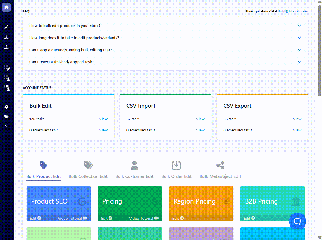 Bulk Product Edit allows you to quickly bulk edit your products, collections, customers, orders, and metaobjects in a few clicks. Our app can save you hours of time automating your tasks, so that you can focus on other aspects of your store.