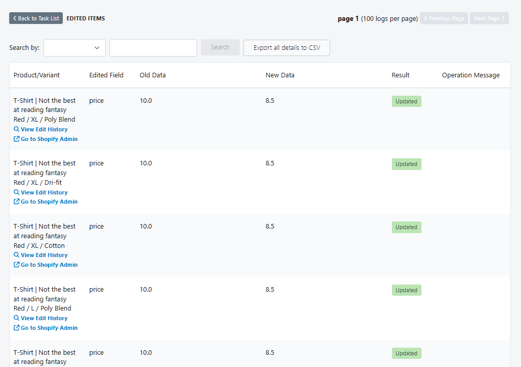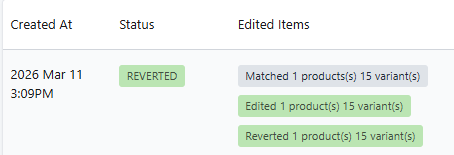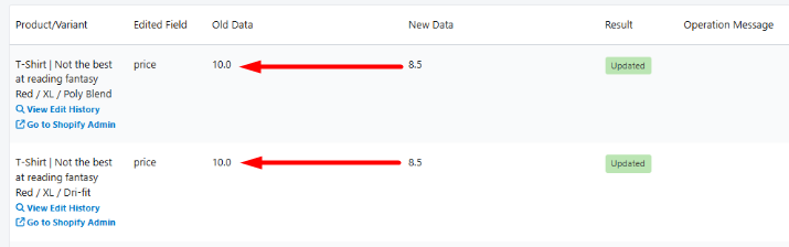 Prices will be reverted to the Old Data of the task. You may confirm the results within Shopify Admin: