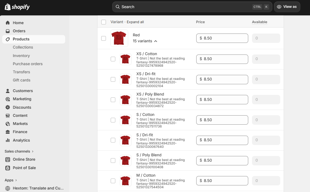If you are looking to edit all variants, or if your products do not have any variants, you can skip this step.