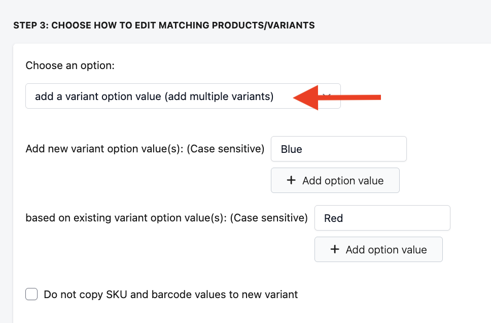Based on Existing Variant Option Value: (Case-sensitive) Red