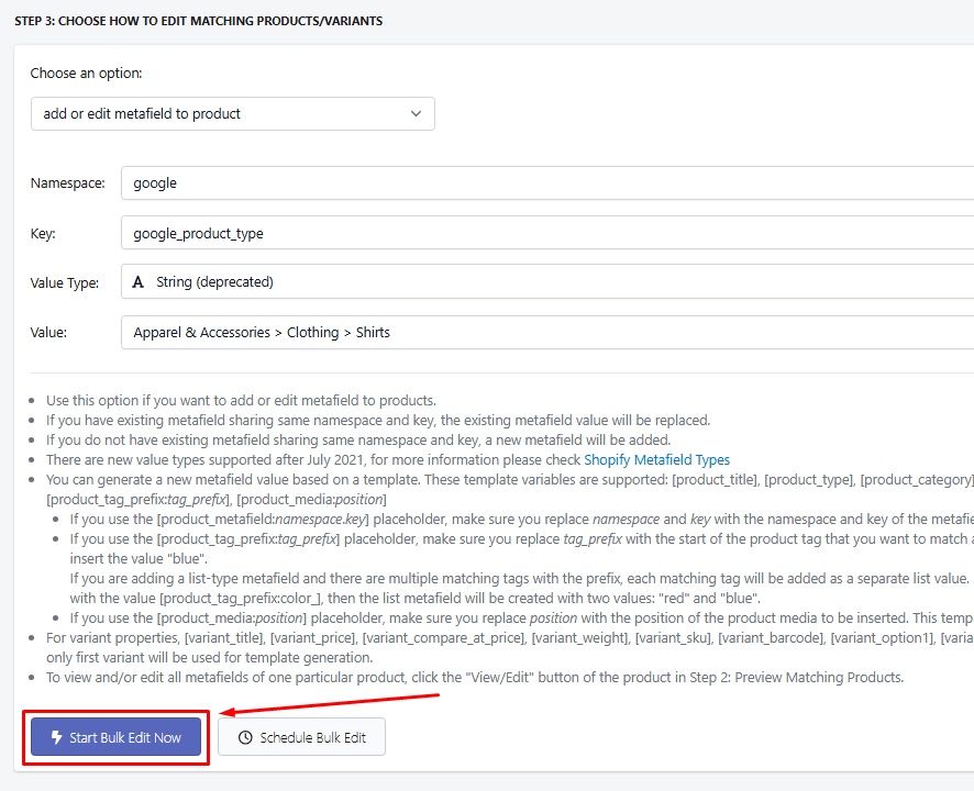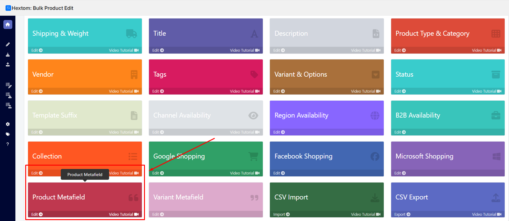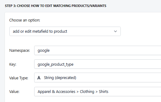 If you need to update these legacy attributes in your Shopify store, the Bulk Product Edit app lets you edit them using the product metafield tool.