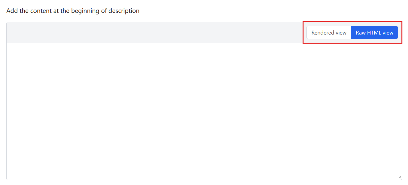 - Raw HTML view: This view displays the HTML code behind your description. This is useful if you need to edit or preserve specific HTML tags and formatting.