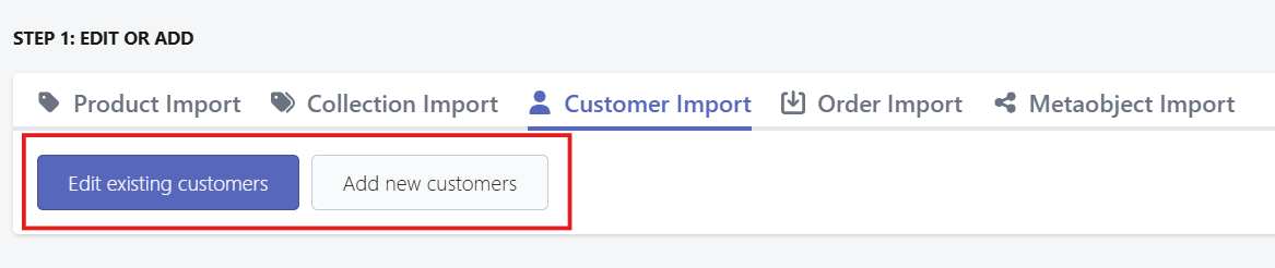 Select whether you want to add new customers or update existing customer records.