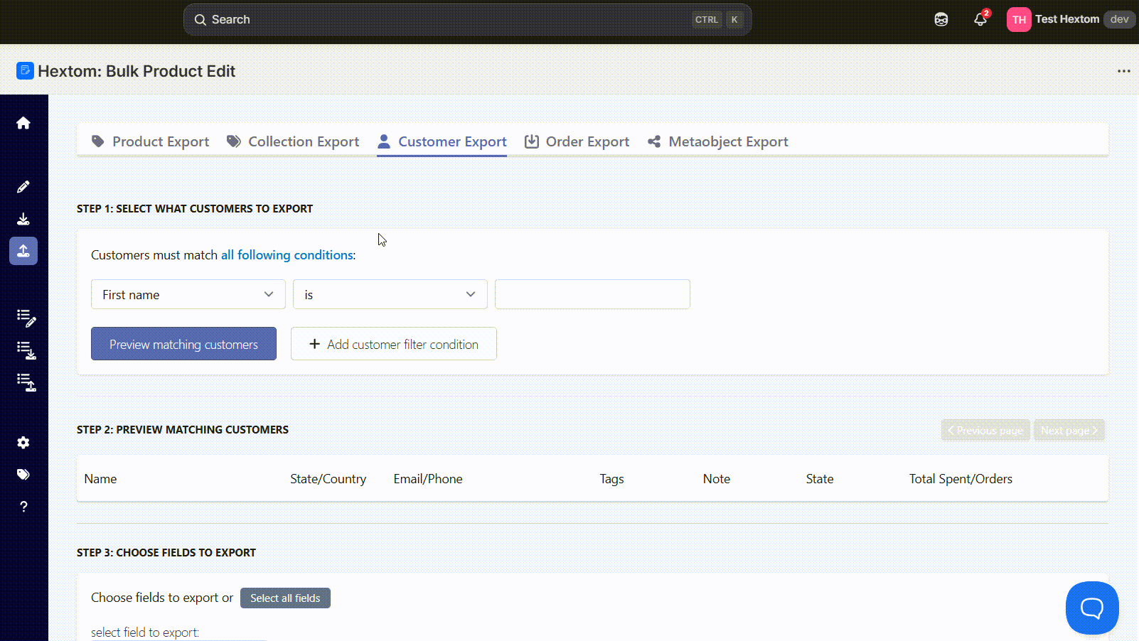 Filter the customers you want to include in the export based on tags, creation date, or other conditions.